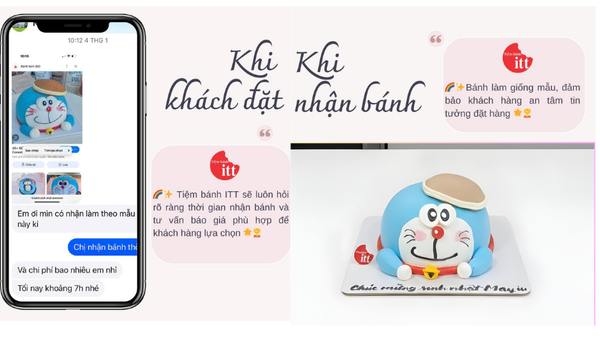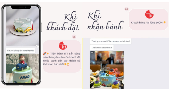 ✨ Khách cũng đánh giá cao việc bánh giống ảnh, làm gọn gàng, chỉn chu, kể cả những đơn đặt cận ngày. ITT luôn làm bánh theo đơn, hoàn thiện sát giờ giao để bánh luôn mới.